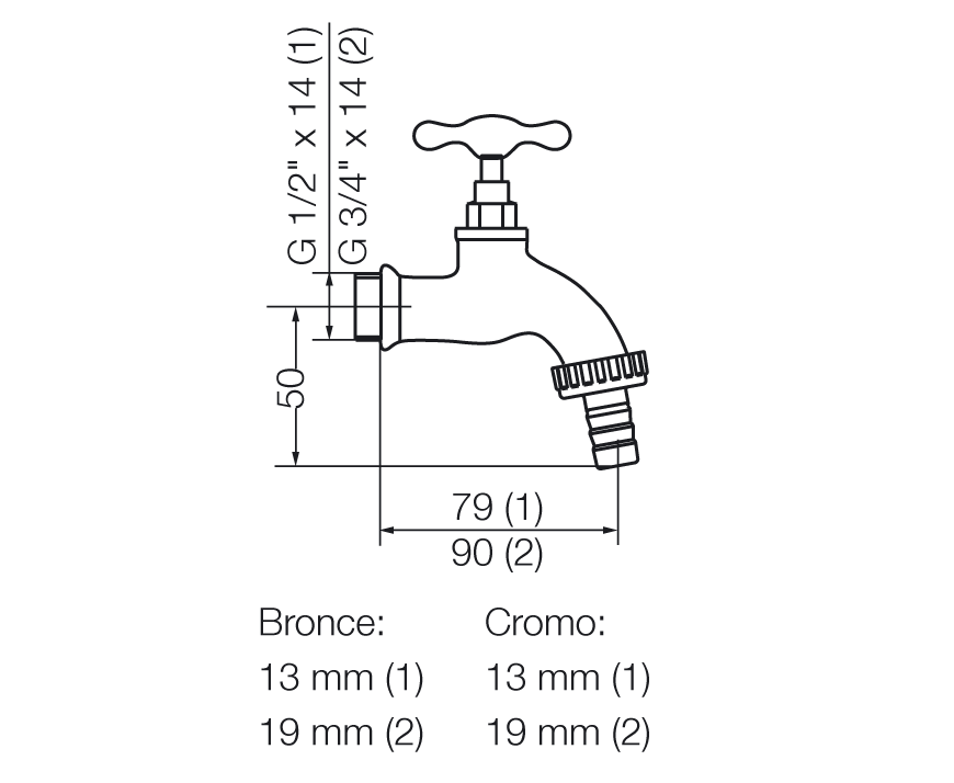 FV 0436 – Canilla para Manguera, Aprobada y Reforzada, de 13 mm. Volante “T” Fijo.