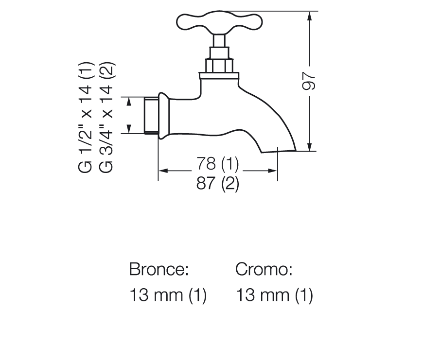 FV 0430 – Canilla para Pared, de Una Sola Agua, Aprobada y Reforzada, Volante “T” Fijo, de 13 mm.