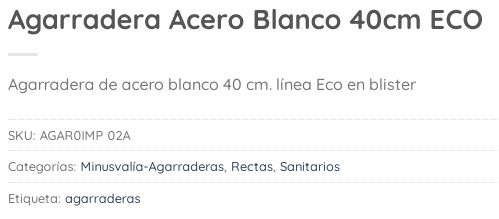 Agarradera Recta x 40cm Acero Blanca con Cubre Tornillos, D’accord.