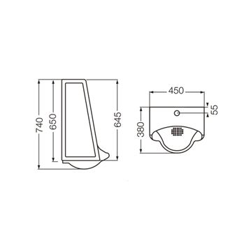 Mingitorio Mural Corto Blanco, Ferrum.