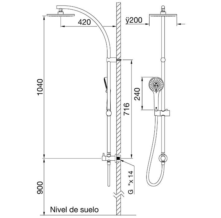 FV 0130.02 – Arquis Duo II – Ducha con Barral Combinada con Ducha Manual Autolimpiante de Tres Funciones.