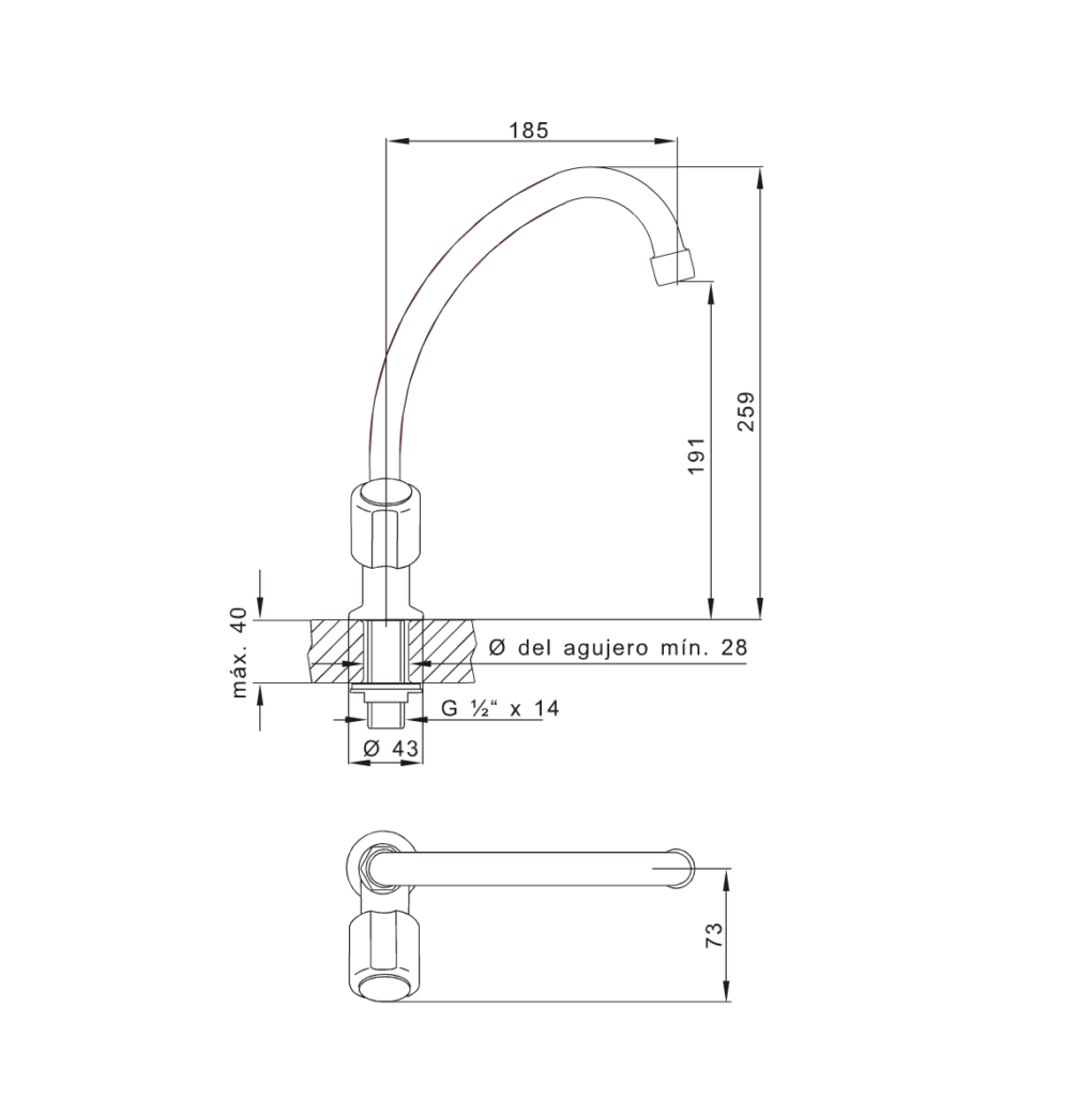 FV 0425/15 Allegro – Canilla para Mesada, de Una Sola Agua, con Pico Móvil Alto.