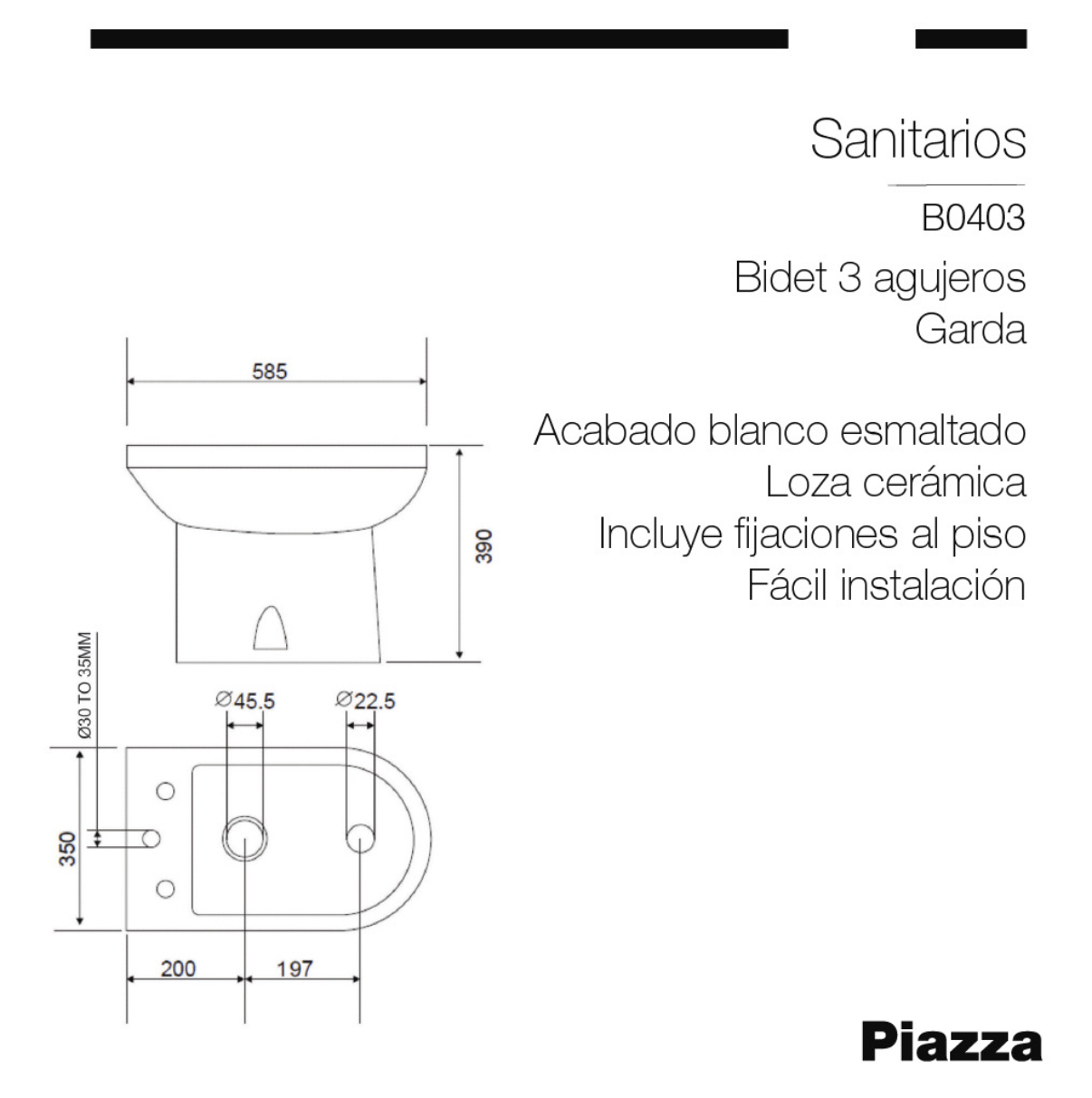 / PIAZZA – B0403 GARDA BCO – BIDET 3 AGUJEROS