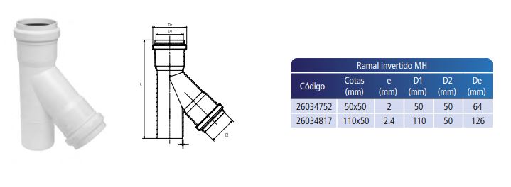RAMAL INVERTIDO PVC ( JE ) 50 MM X 50 MM MH TIGRE (26034752)