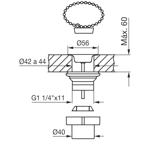 FV 0246.06 – Desagüe Universal de Latón para Lavatorio o Bidet con Cuerpo Plástico Rosca de 1 1/4″.
